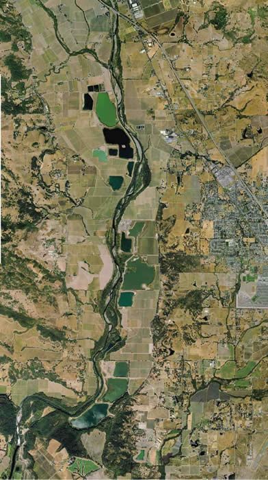 You could hardly ask for a more beautiful battleground than the middle reach of the Russian River, seen from above with the Town of Windsor on the right.