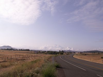 Traveling by bicycle is an excellent way to savor the landscape as one passes through it. Harrison says one of his most memorable vistas-from among many-was this view of Mount Shasta, look back the morning he continued on from Yreka.