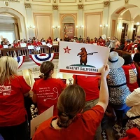 (Photo: Des Moines City Councilman and a precinct chair Carl Voss shows the app that was used for caucus results reporting on his smartphone after he unsuccessfully attempted to drop off a caucus results packet from Precinct 55 at the Iowa Democratic Party headquarters on Tuesday in Des Moines, Iowa - Alex Wong / Getty Images / via CapRadio)