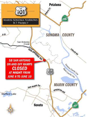 The southbound on and off ramps at San Antonio Road will be closed as well.