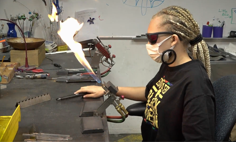 Young artists Tobias and Sharay are part of the Fuego Youth Leadership Program at The Crucible in Oakland. After being mentored by adult artists, Fuego youth leaders instruct their peers in industrial arts like welding and glass flameworking. With an emphasis on creativity, self-expression and safety, The Crucible has found a great way to play with fire!
