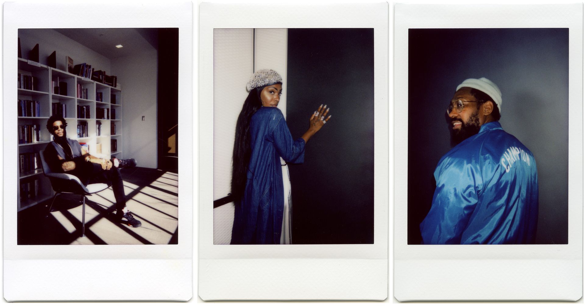 I find that using a Polaroid camera often disarms the people I photograph. It's familiar, nostalgic, almost a toy, so it doesn't intimidate in the same way a professional camera does — which helps break down some of the barriers that usually exist between photographers and their subjects. It is also limiting: For these portraits I took only one or two shots of each artist, leaving little time to warm up to the situation or try out different poses. The moment happens quickly, and the imperfections are part of the result.