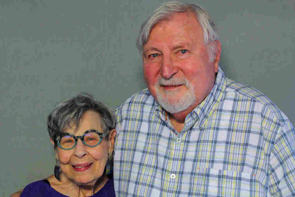 Julia and Joel Helfman at their StoryCorps interview in Philadelphia, PA in 2019. The couple met in 1943 and were married six years later.