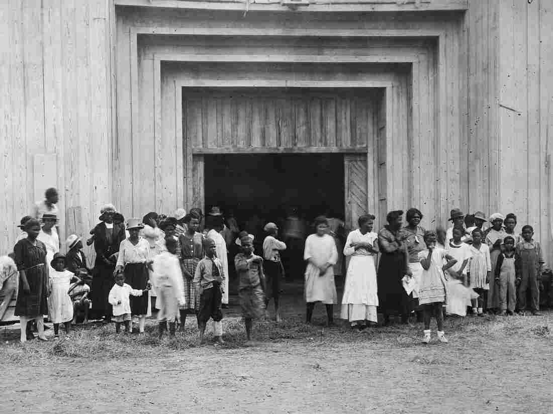 Black residents stand outside the entrance to a refugee camp on the fairgrounds in Tulsa after the massacre. Tulsa, and the nation, have been slow to acknowledge the brutal reality of what happened back in 1921, and the lasting impact it's had on Black families. Library of Congress hide caption