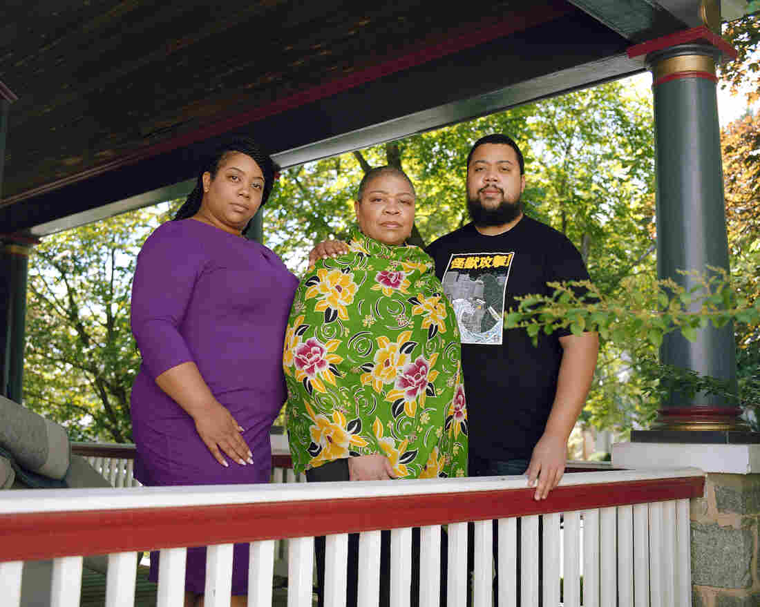 Bruner stands with her children, Portia Hurtt and Kevin Hurtt, on the front porch of their home in Washington, D.C. The family has been together during the pandemic and have used the time to consider the legacy of Tulsa and the family's heritage.