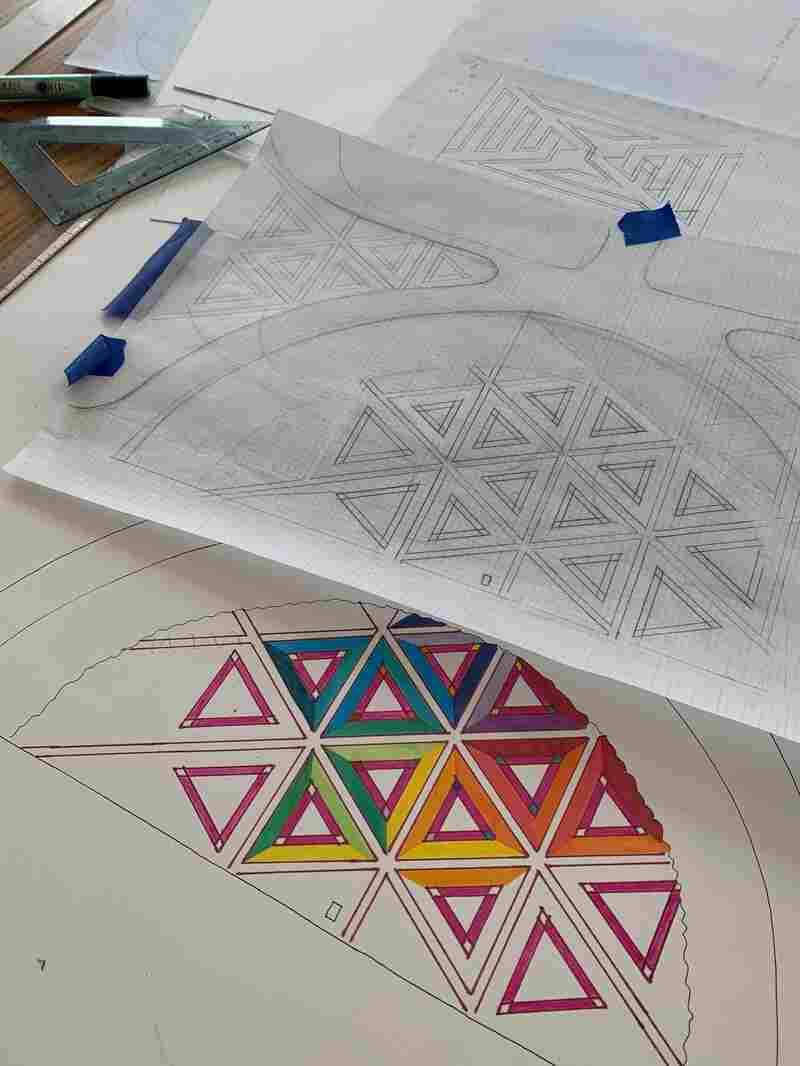 The pink triangles in her design have particular meaning, she explains. "Some of it goes back to the Holocaust, of gay people being identified with the pink triangle. And then it was also used in ACT UP in the '80s when people were protesting against AIDS and not having a vaccine for AIDS. So the use of the pink triangle in this piece, for me, it's a bit of a reference to that historic identity of justice."