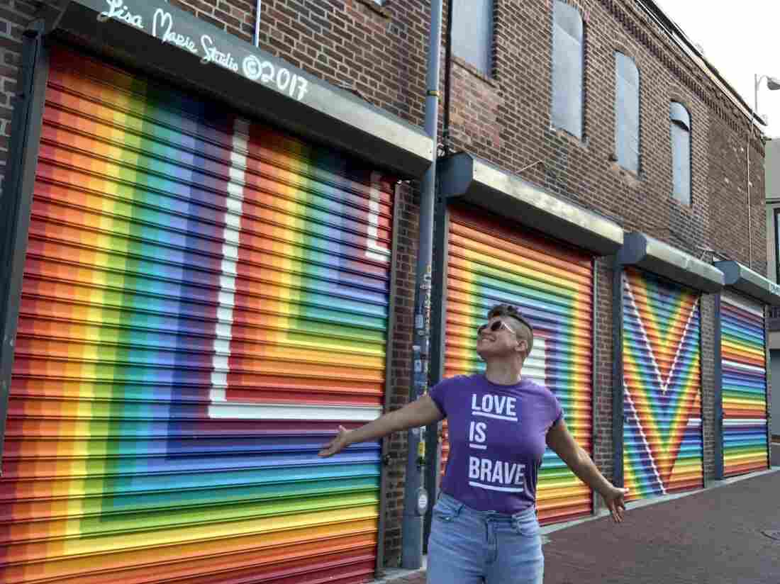 Lisa Marie Thalhammer poses last summer in front of her 2017 LOVE mural in D.C.'s Blagden Alley.