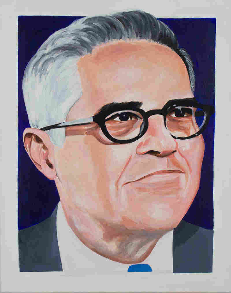 A portrait of Philadelphia District Attorney Larry Krasner by James "Yaya" Hough.