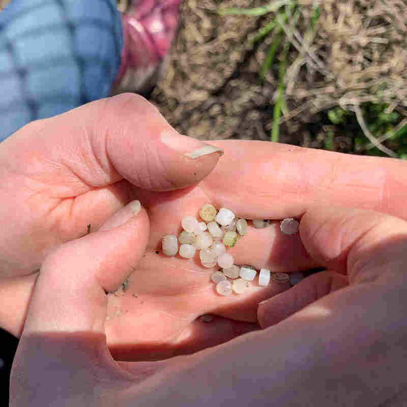Pellets collected outside the fence line at the Chevron Phillips plant in Sweeny, TX. Chevron Phillips says, "We have almost no pellets leaving our sites." Graham Smith/NPR hide caption