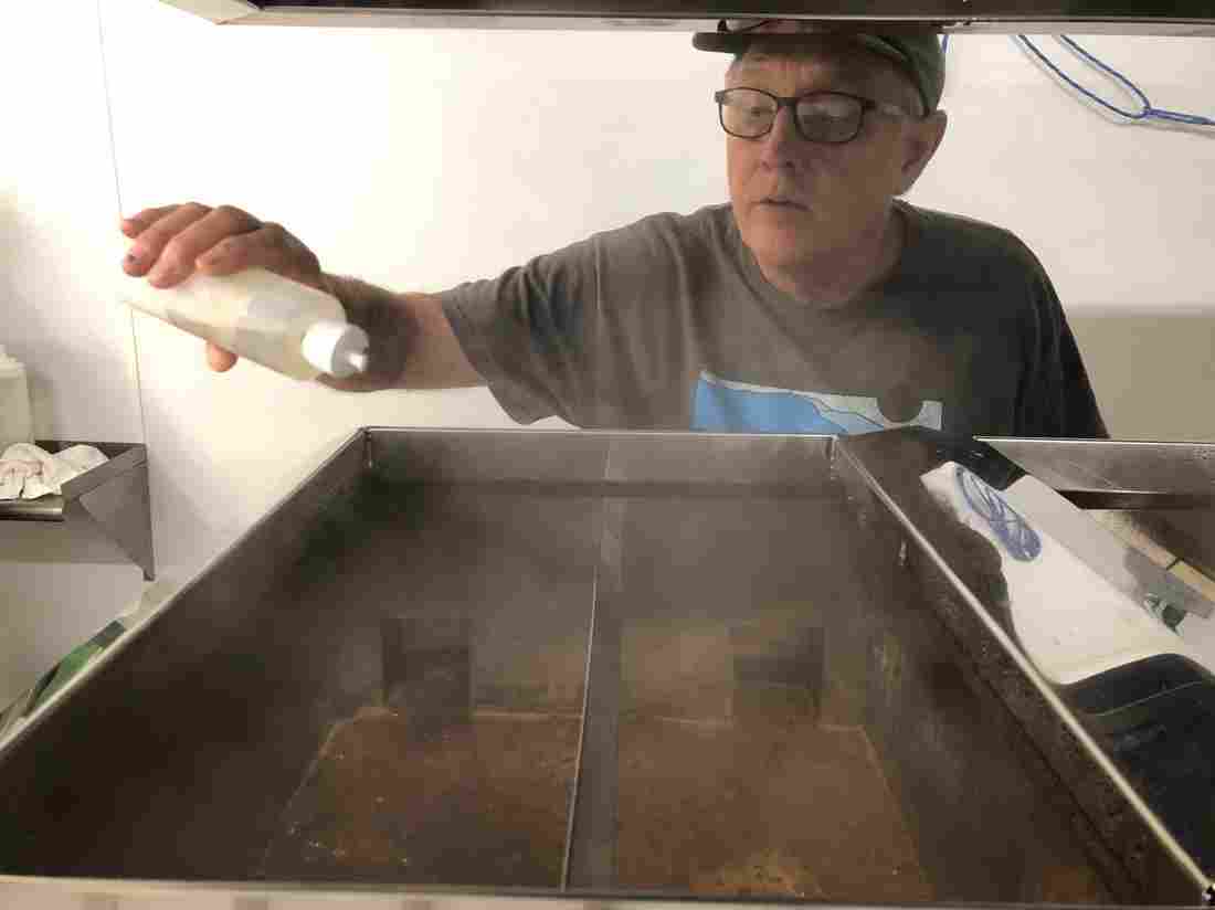 Neil McLeod, owner of Neil's Bigleaf Maple Syrup farm, keeps a close eye on his reducing sap for out of control foaming.