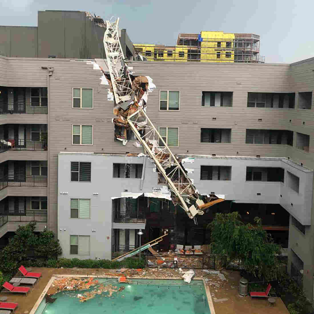 Michael Santana/APA construction crane in Dallas came crashing down Sunday on an apartment building, killing at least one person and injuring five others, local fire officials said.