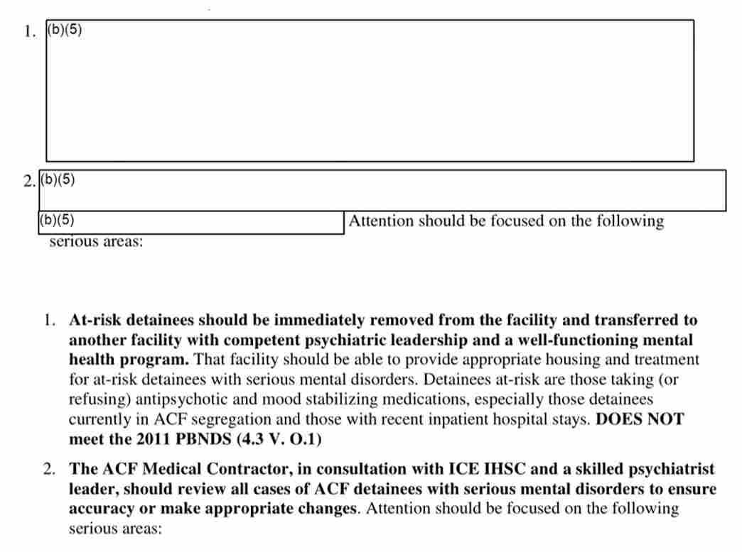 - And government experts were so alarmed that they recommended "immediately" transferring "at-risk" detainees to another facility to protect their health and safety.
