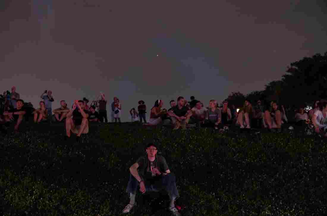 Sarah and Mark Moser traveled from Oakland, Calif., and were excited to see the projection. "I remember we watched the launch on TV when we were kids," Mark Moser said.