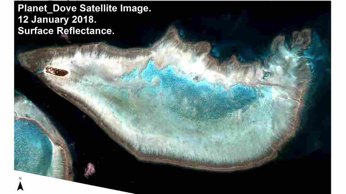 A satellite image of the reef off Australia's Heron Island. Vulcan, a U.S. company founded by Paul Allen, the co-founder of Microsoft, is using satellite images to map all of the world's tropical, shallow-water reefs. The project is set to be completed by the middle of 2021. Planet Labs Inc. hide caption