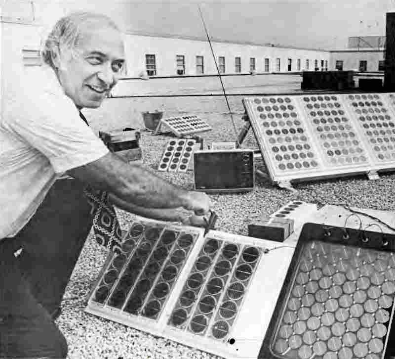 , in 1973. John Perlin, author of Let It Shine: The 6,000-Year Story of Solar Energy, credits Berman, Solar Power Corp. and Exxon with "planting the flag of photovoltaics throughout the world." Robert Willis/Solar Power Corp. via John Perlin hide caption