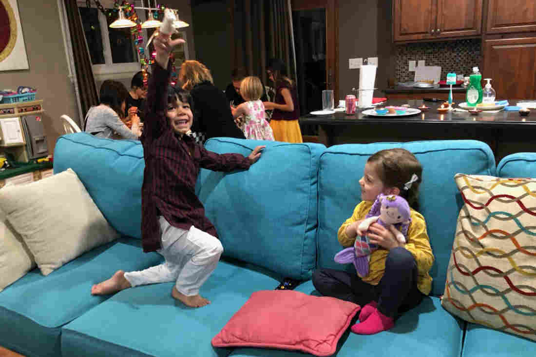 Sarita Talusani Keller's son, Jackson, is seen celebrating their annual Diwali potluck in October, 2019. Sarita Keller hide caption