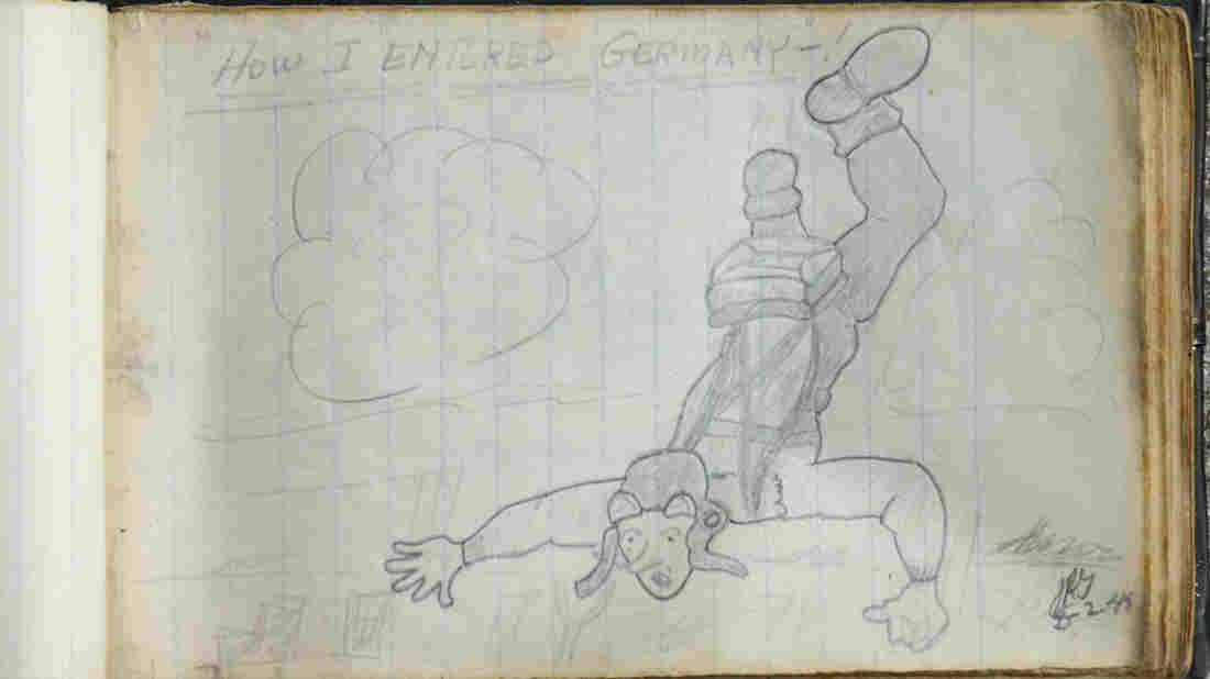 Hungry and homesick Howard coped the only way he knew how. He drew a comic strip. The book, made of cigarette wrappers bound together with scrap metal, was sent around camp.