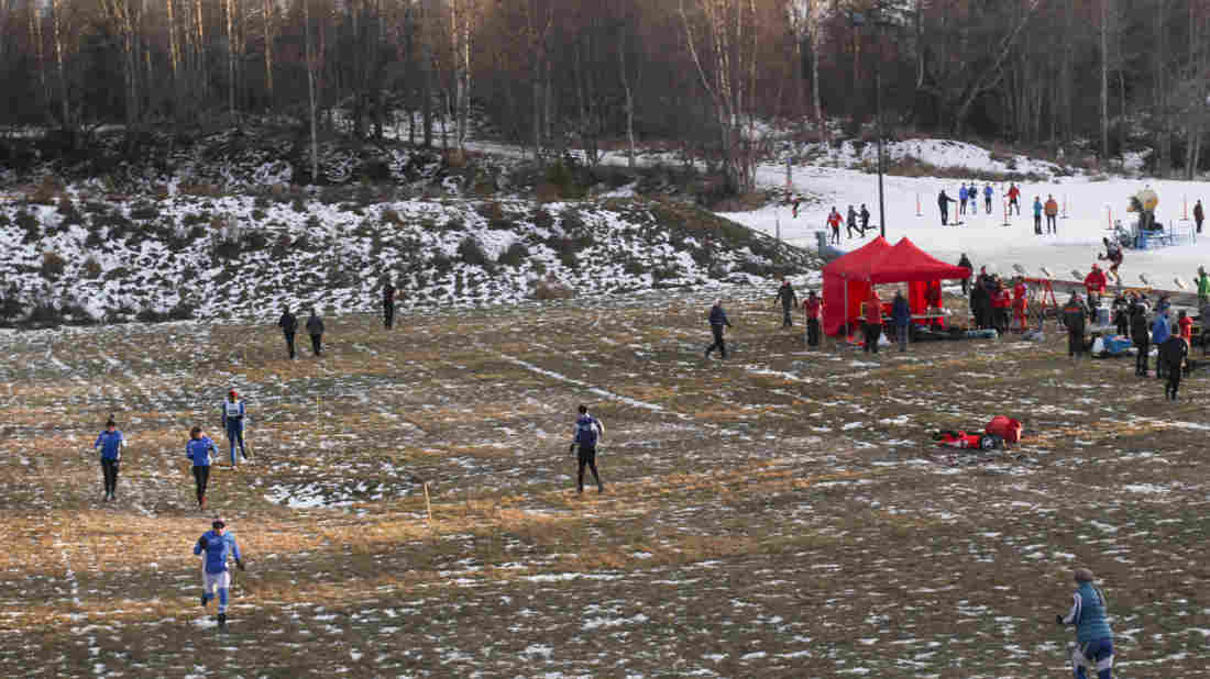 Except by mid-December, when the race took place, most of the city's snow had melted, leaving behind a messy mix of ice and grit. Hundreds of racers took turns skiing around a mile-long loop of man-made snow that one finisher, Max Beiergrohslein, called a "gerbil loop." He and his teammates warmed up for their race not by skiing but by jogging around bare areas next to the course.