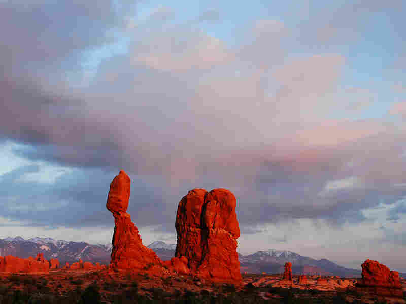 Balanced Rock at Arches National Park. Arches and Canyonlands both offer hiking, camping, biking and more for visitors, without the crowds common for Utah's Zion National Park. NPS/Debra Miller/NPS hide caption