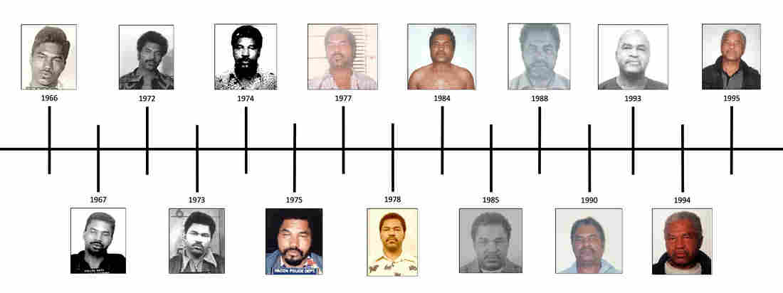 to 93 murders in more than a dozen states over 35 years. Handout/FBI via Getty Images hide caption