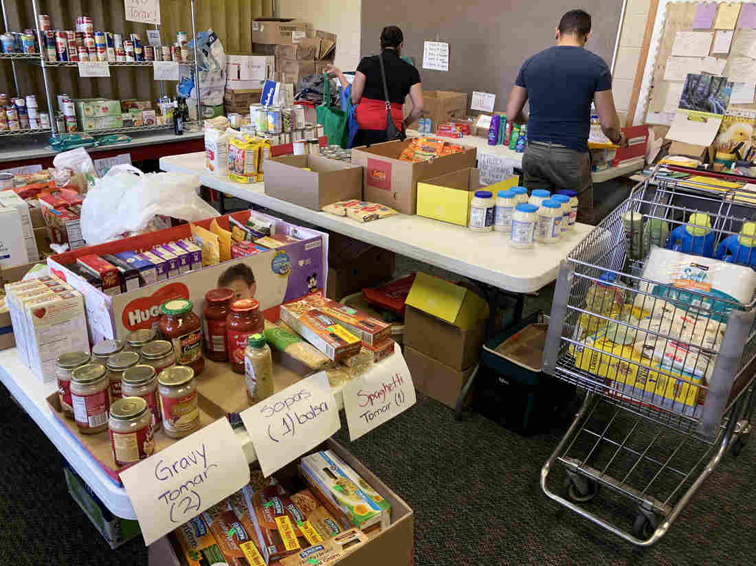 A food pantry was set up at the First Presbyterian Church to help feed the men working in the area and their families. Jim Zarroli/NPR hide caption