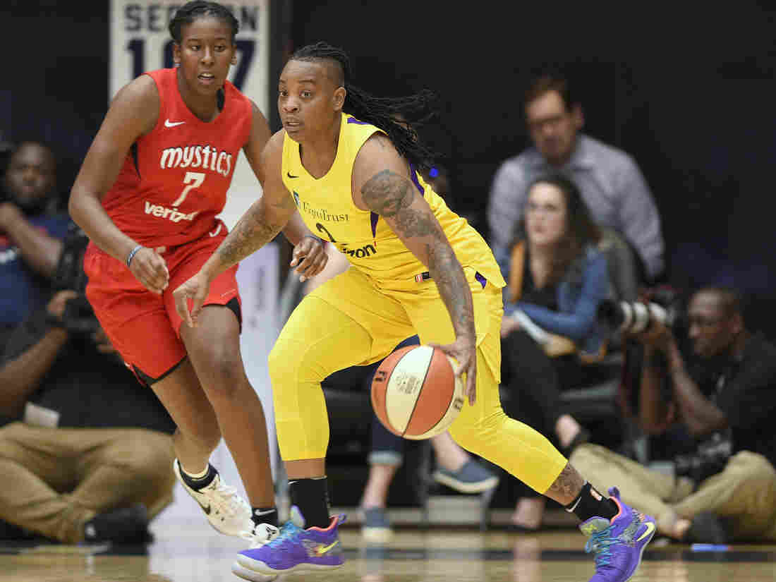 Los Angeles Sparks guard Riquna Williams (right) dribbles in a playoff game against the Washington Mystics last year.