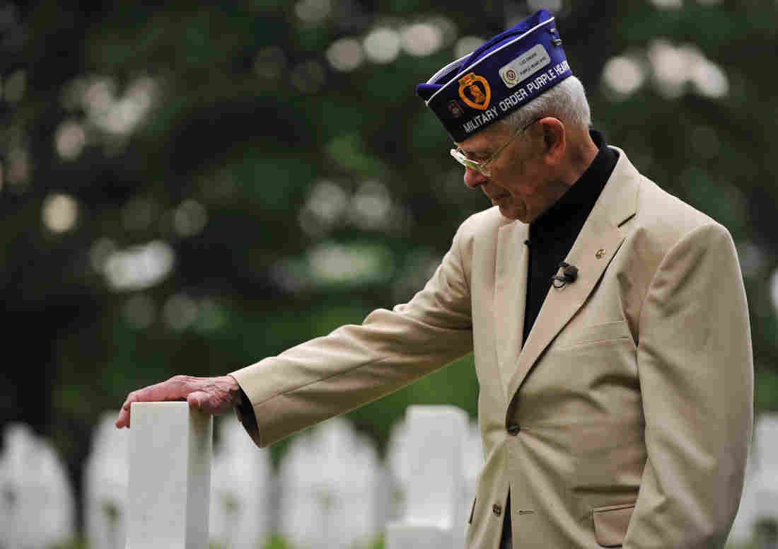 Leslie Cruise, a World War II veteran, pays his respects to Pvt. Richard Vargas with a wreath laying ceremony at Lorraine American National Cemetery and Memorial, St. Avold, France, on June 2, 2014.