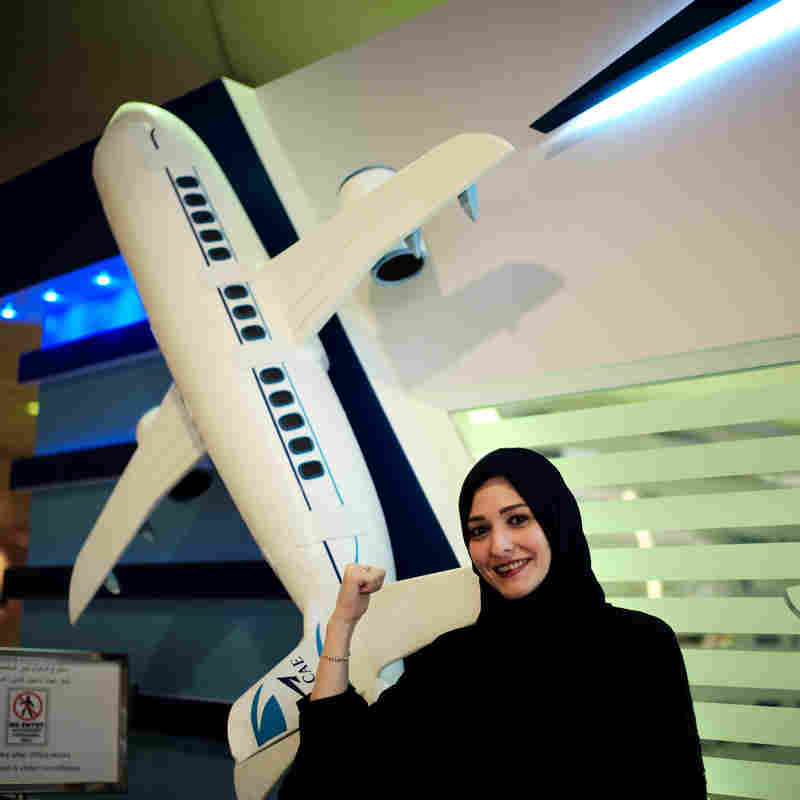 Dalia Yashar, one of the first Saudi students who registered to become a commercial pilot, stands in front of the registration centre, CAE Oxford ATC, at King Fahd International Airport in Dammam, Saudi Arabia, last July.