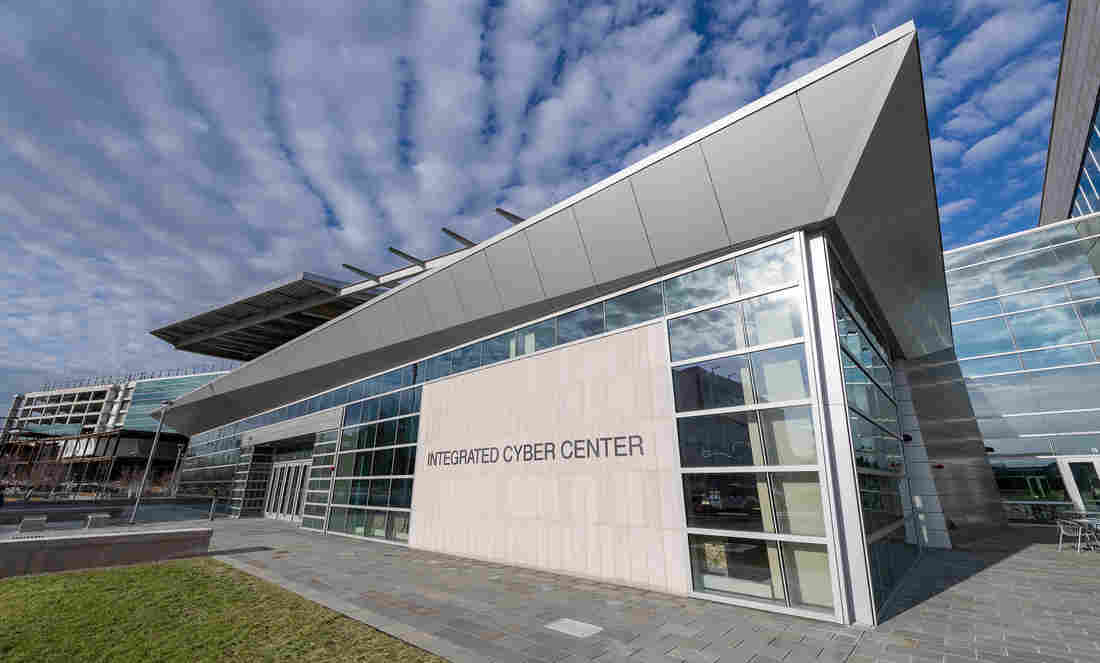 You can still smell the fresh paint when walking the long, whitewashed corridors of the Integrated Cyber Center, the newest building on the compound.