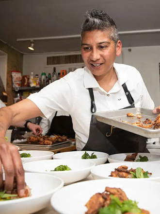 Their work has been showcased on CNN's Parts Unknown with Anthony Bourdain, Michelle Obama's Waffles + Mochi on Netflix, and The Tamron Hall Show, as well as in publications such as The New York Times, Food & Wine, Bon Appétit, and Vogue India. A frequent speaker and panelist, Chef Preeti is recognized as much for their cultural insight as their culinary creativity.